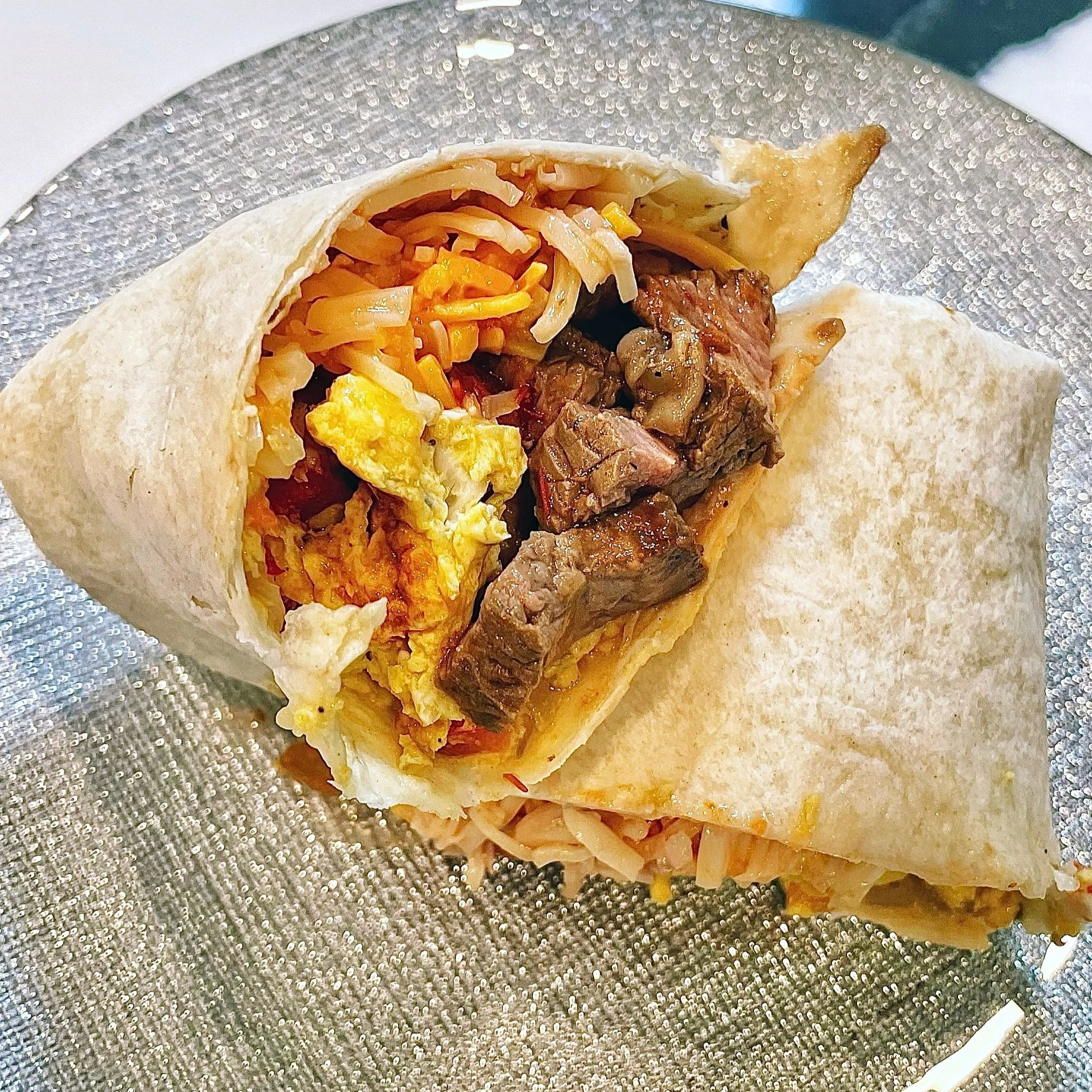 Leftover Steak, Bell Pepper, Egg & Cheese Breakfast Burrito